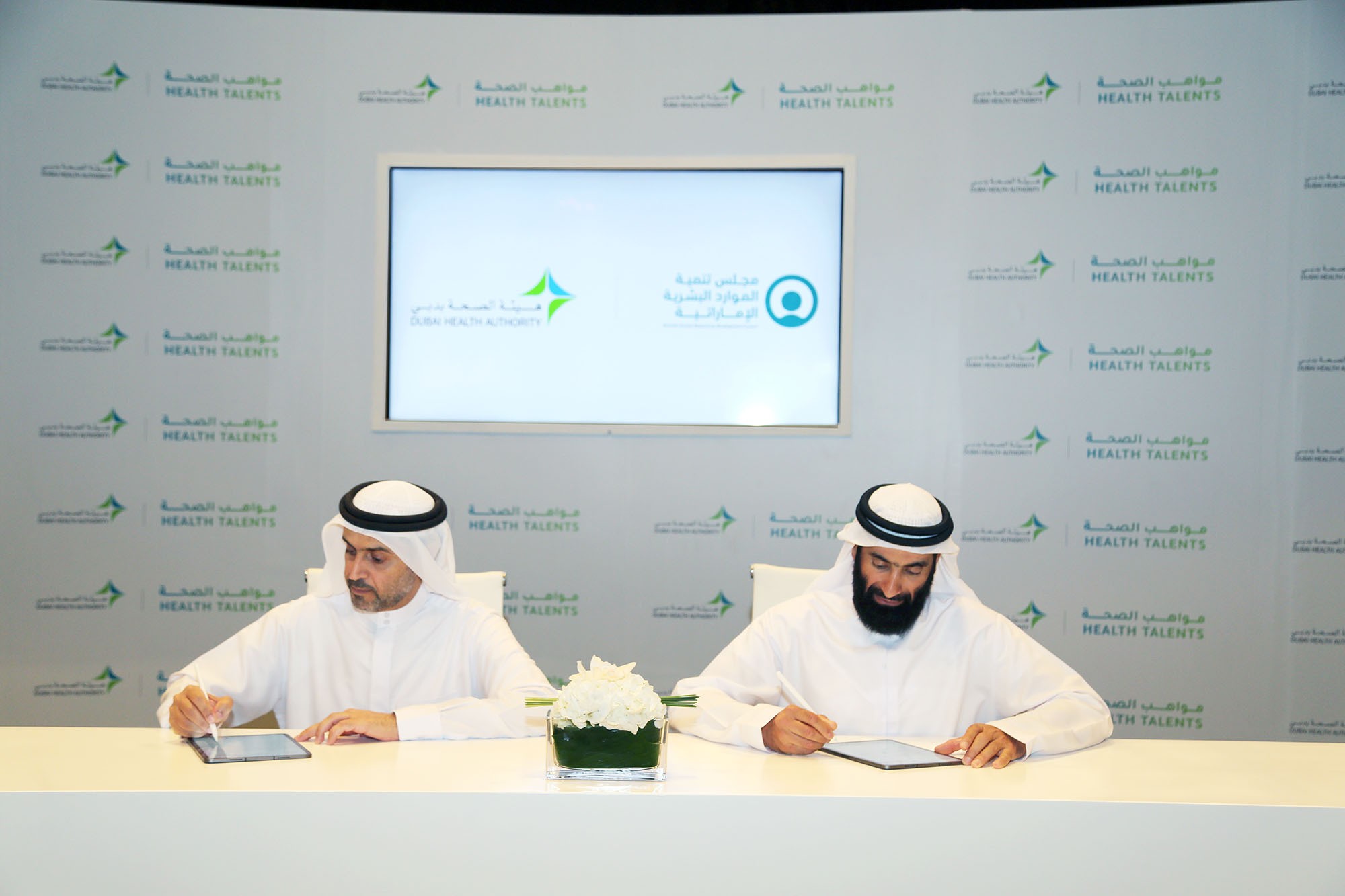 The MoU was signed by Abdullah Ali bin Zayed Al Falasi, Director-General of the Human Resources Department in Dubai and Deputy Chairman of EHRDC in Dubai, and Awad Saghir Al Ketbi, Director-General of the Dubai Health Authority.