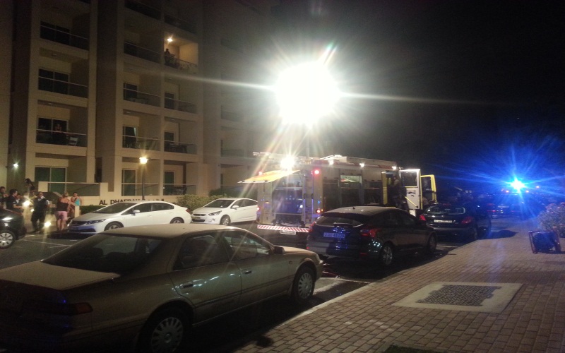 The fire broke out at around 20.30 in an apartment on the ground floor of Al Thayyal 2. According to civil defense forces on the ground the fire broke out in the kitchen of the apartment, which is occupied by a couple.