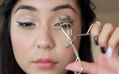 For day, start with foundation, and a concealer to lighten and brighten, then mattify the face with a setting powder. For the eyes, start by outlining and defining your eyebrows, and add cream shadow to the lids, then liquid eyeliner on the outer half of the eye. Any additional cheekbone contouring is optional. A bold pink blush on the apples of the cheeks and cream highlighter add glow, while pink lip butter, and curled eyelashes finish the look.