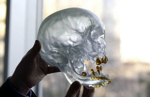A person holds a reproduction of a patient's skull with prosthesis at a press conference on the first facial composite tissue allotransplantation in Belgium, at the Ghent University hospital, in Ghent. Belgian surgeons have successfully performed the country's first-ever face transplant, the 19th in the world, doctors announced Saturday. (AFP)