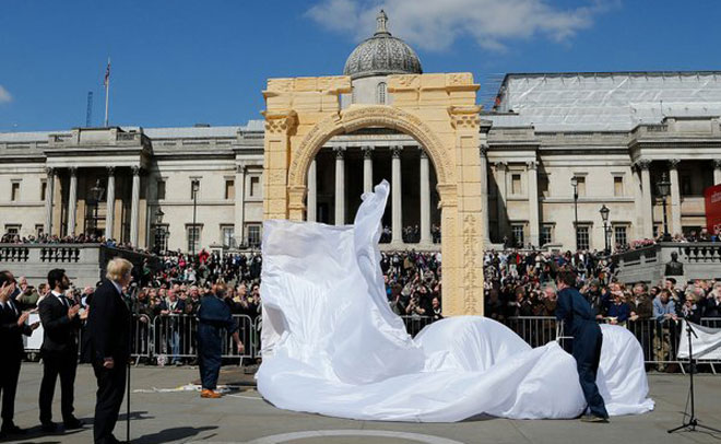 A 2,000-year-old triumphal arch destroyed by the Daesh in Syria has risen again — in replica — in London's Trafalgar Square.