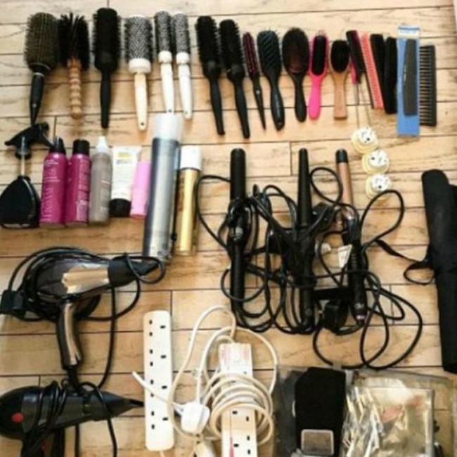 Amanda Cook Tucker took to her private Instagram account to share a picture of a whole host of hair products, including 13 different hair brushes, six combs, three sets of curling irons and straighteners, and two hairdryers.