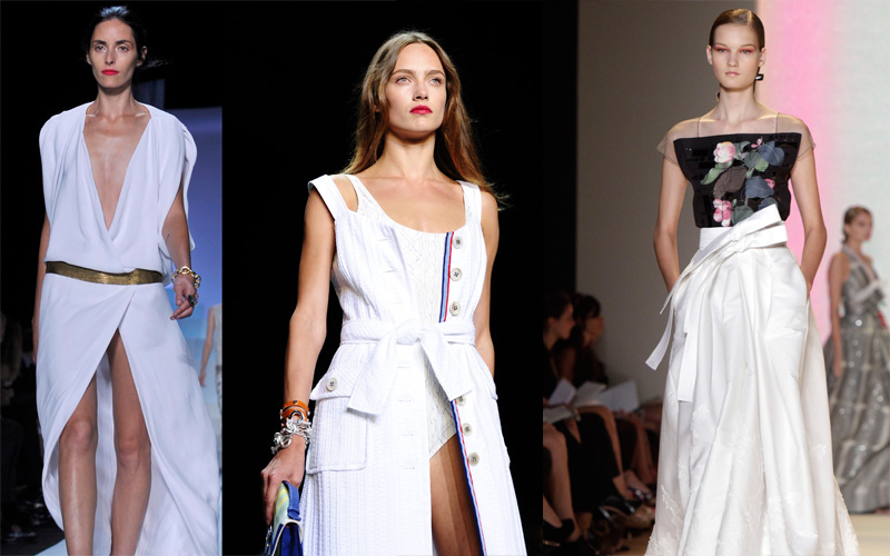 White and minimalism are key trends for spring. Designs by, from left, Diane von Furstenberg, Tommy Hilfger and Carolina Herrera (AGENCIES)