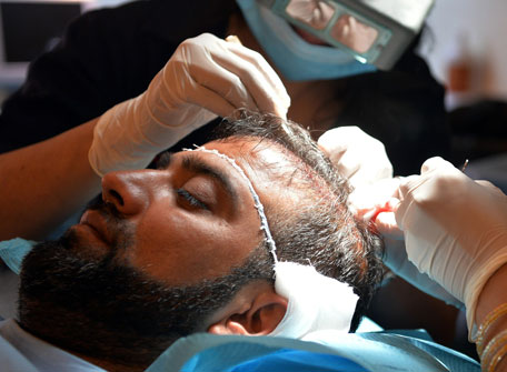 Pakistani doctors treating a patient for hair transplants at a clinic in Islamabad. (AFP)