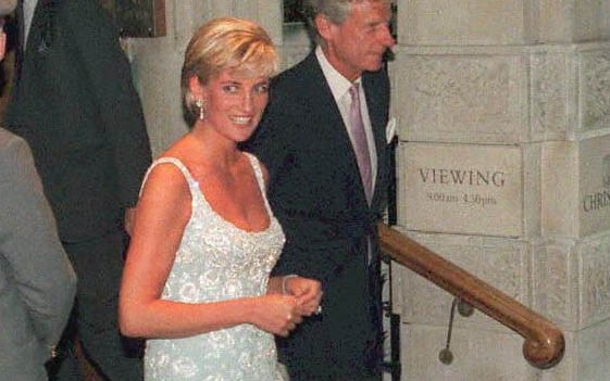 This picture taken on June 2, 1997 shows Diana, Princess of Wales, wearing a dress by British designer Catherine Walker, leaving a VIP reception at Christie's saleroom in London. Walker died last week at the age of 65 (AFP)