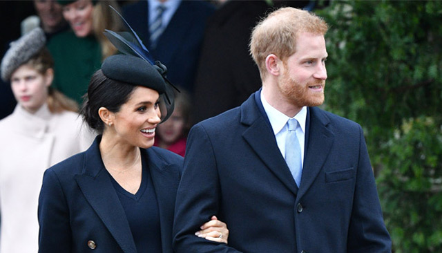 The Duchess of Sussex wore a deep navy Wool-Blend Midi Dress and with a matching coat, both by Victoria, and teamed it with one of her bags and a fascinator too.