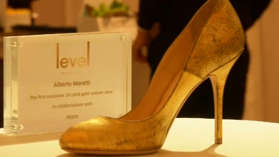 The world's largest shoe shop has gone a step further than many of its competitors as the footwear industry globally continues to grow. As Hayley Platt reports the Level Shoe Distict in Dubai is now offering shoes made of 24-carat gold.