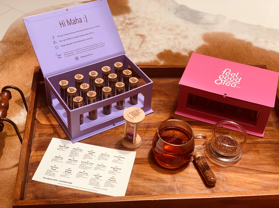 Mohammad’s products — blends of organic tea leaves, herbs and spices pressed into glass tubes called “Tea Pods” packed in a completely personalized tea box, aimed at millennial women – are sold on their extremely user-friendly website, as well as on Talabat, Deliveroo and InstaShop delivered right to your doorstep within hours. A AED 129 box of 15 Tea Pods is available in flavors like “Strawberry Cream Ceylon”, “Gingerbread Spice” and “Cherry Blossoms”.