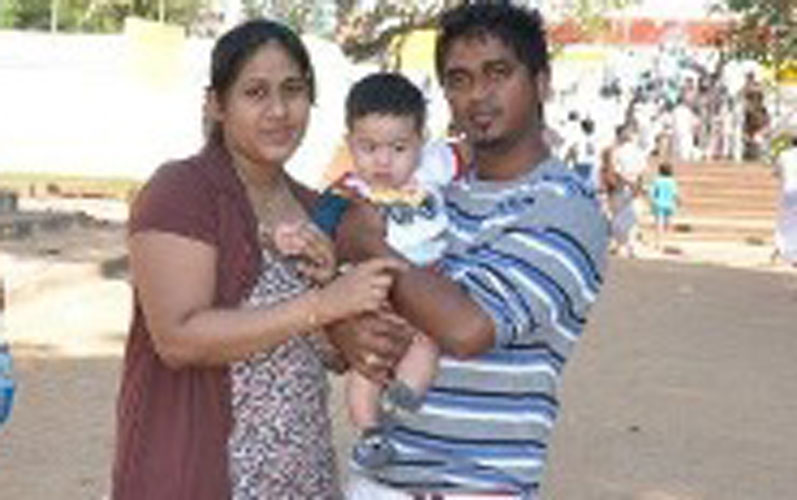 Nilakshi Priyadarshana with her husband and child (SUPPLIED)