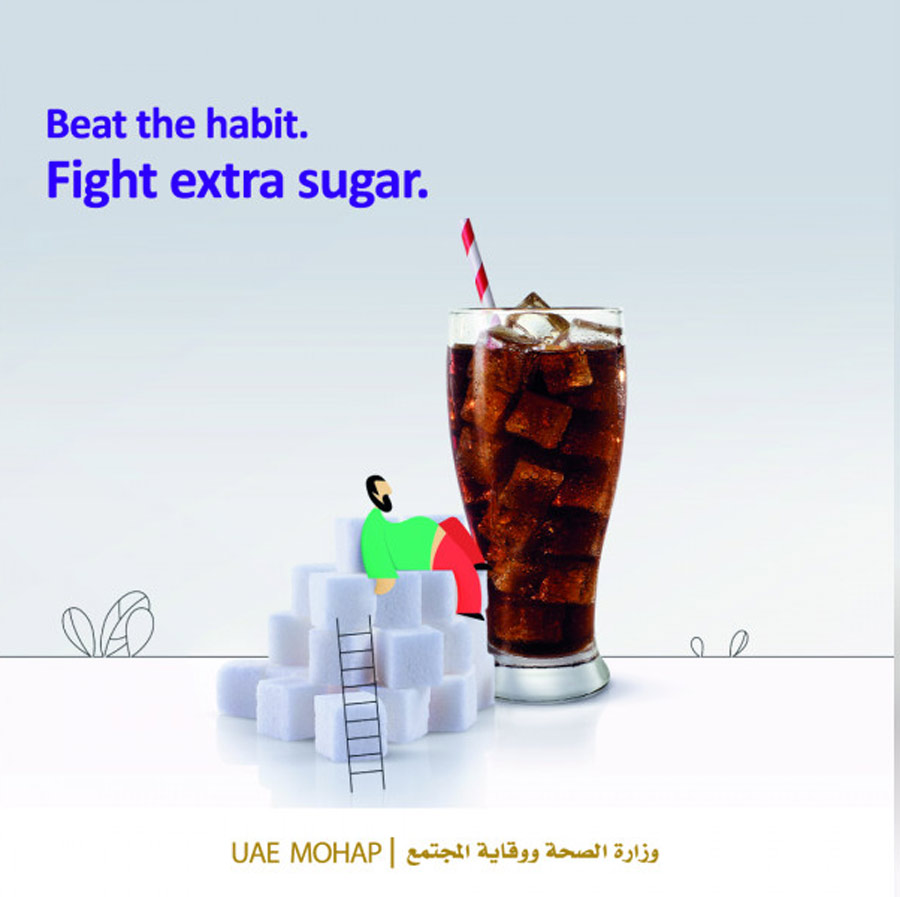 As part of Ma’kom" initiative activities, the Ministry of Health and Prevention (MoHAP) today launched the second phase of the media awareness campaign "Beat the Habit Fight Extra Sugar" to raise awareness about the health risks associated with the overconsumption of sugar-sweetened beverages or any other sweeteners.
