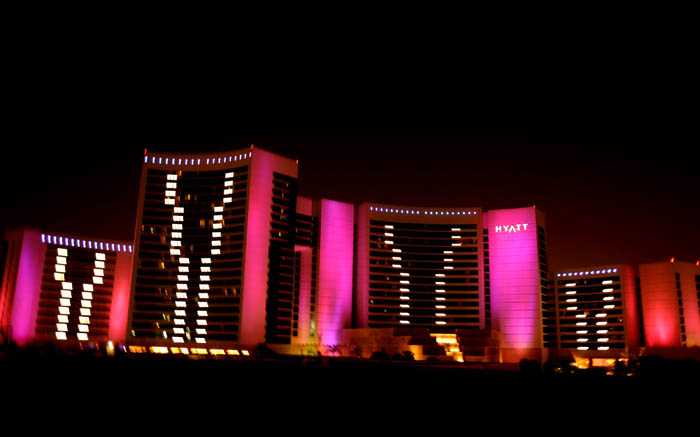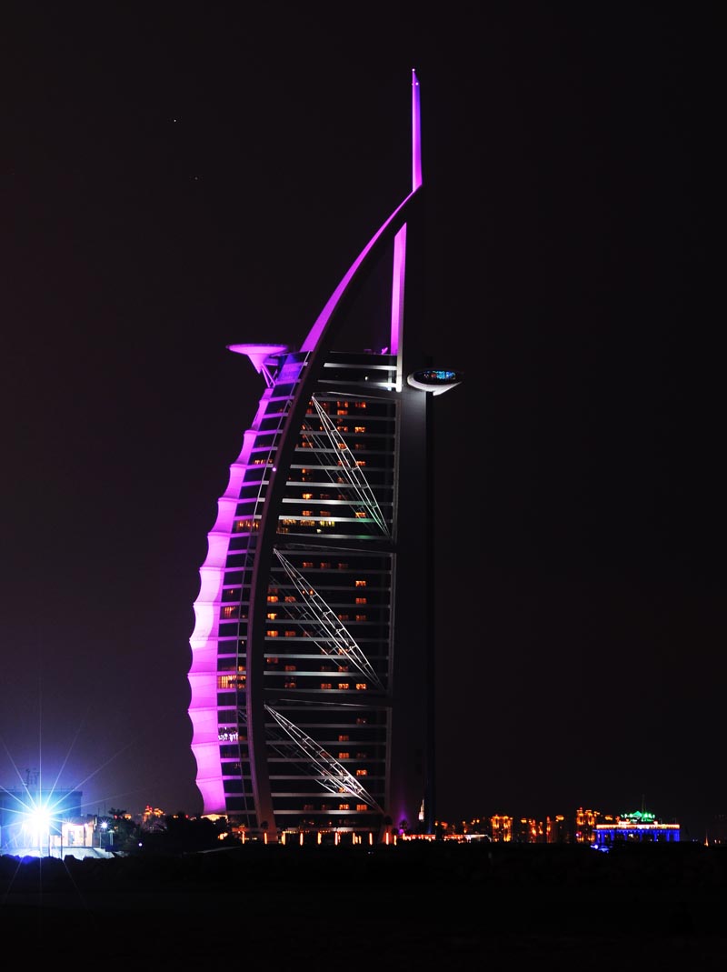 Dubai’s Burj Al Arab and Grand Hyatt Hotel brought another world record to the emirate this weekend, as they went pink in a worldwide move to support breast cancer.