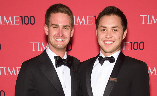 Evan Spiegel (L) and Bobby Murphy attend the 2014 Time 100 Gala at Frederick P. Rose Hall, Jazz at Lincoln Center on April 29, 2014 in New York City. (Getty images)