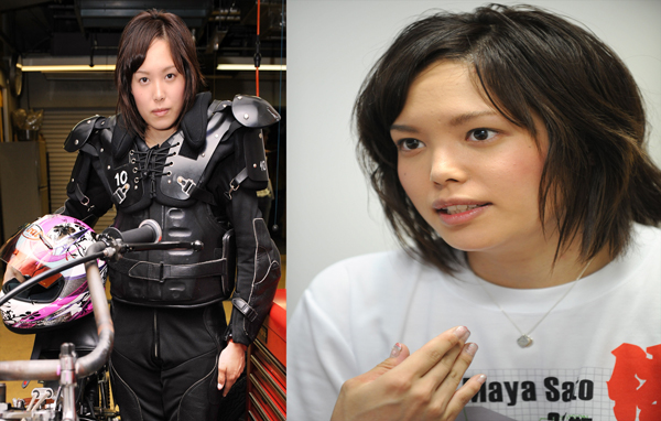 Japanese teenage daredevil Maya Sato says she shed her long hair, her cellphone and almost a few tears as she took on and beat the boys in a tough version of motorcycle racing.