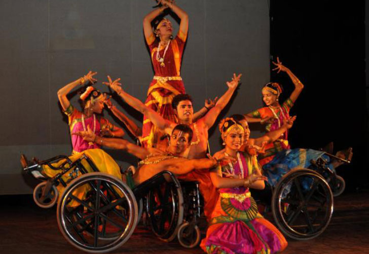 Ability Unlimited, a New Delhi-based voluntary organisation that work with physically challenged has trained about 150 people - deaf and dumb; mentally retarded;and hearing impaired; among others. They perform Bharatnatyam on Wheels, Sufi Dance on Wheels, Kathakali on Wheels, Ramayana on Wheels, Yoga on Wheels and Martial Arts on Wheels.
