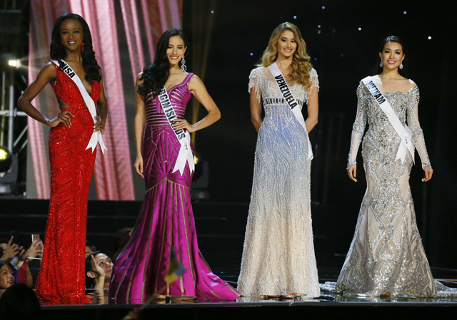 Miss Universe contestants, from left, Deshauna Barber of the United States, Carolyn Carter of THE U.S. Virgin Islands, Mariam Habach of Venezuela and Le Hang of Vietnam.