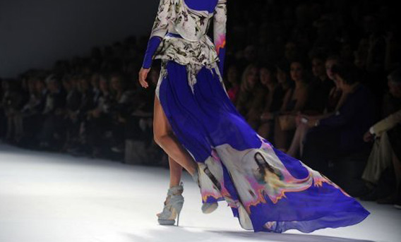 A model displays a creation by designer Vera Wang during the New York Mercedes-Benz Fashion Week Spring 2012, in New York. (AFP)