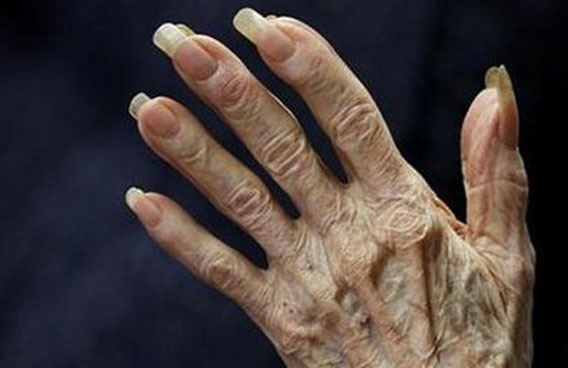 An elderly woman holds her hands together in San Diego, California. (REUTERS)