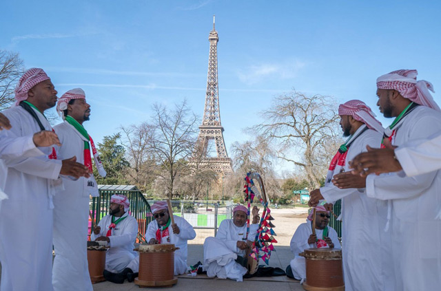 Mass audiences at two of France’s best known landmarks were given a unique insight into Emirati heritage as traditional song and dance performances took to the streets and parks of Paris at Montmartre Cathedral Square and the Eiffel Tower’s Champ-de-Mars as part of Sharjah’s celebration as Special Guest City at the 38th Paris Book Fair.