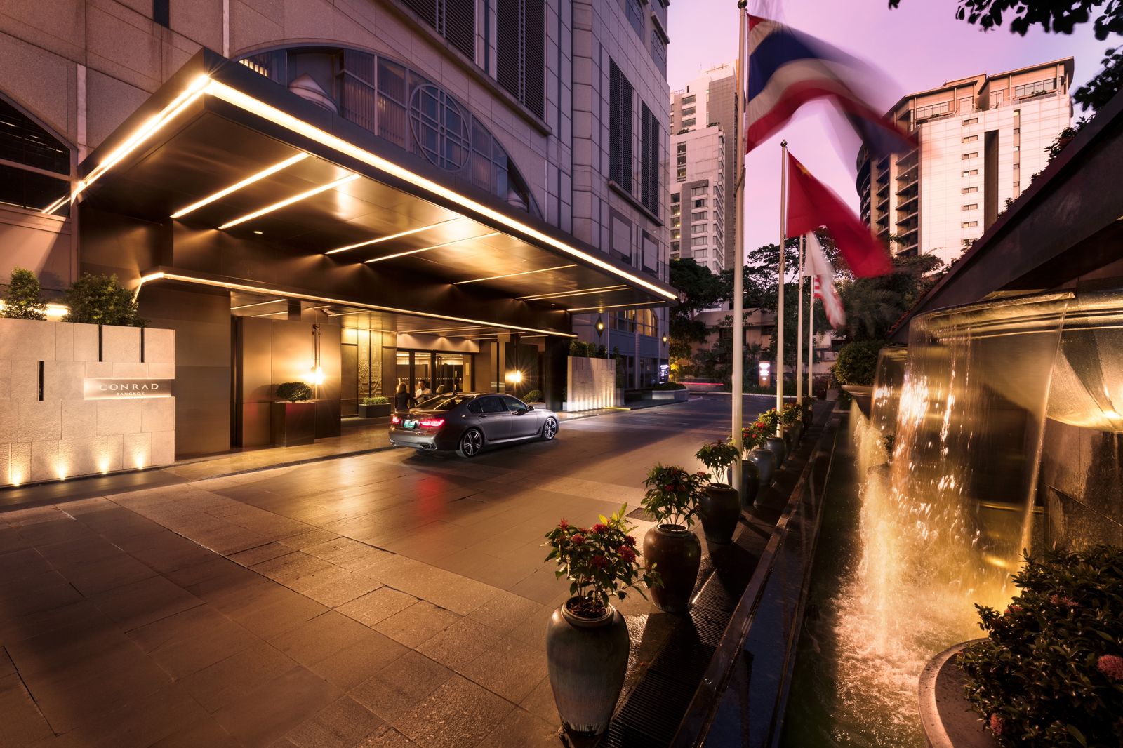 For a luxurious experience, the Conrad Hotel, located about a 5-minute walk from Krung Thai Bank's headquarters and a 25-minute walk from Madame Tussauds Museum, offers luxury amenities in a refined atmosphere.