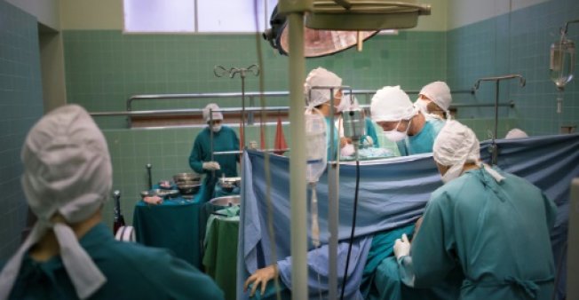 Denise's heart is removed and placed in a 10-degree Celsius (50-degree Fahrenheit) solution for transfer to an operating room where around 20 doctors, nurses and technicians are gathered around Louis.
