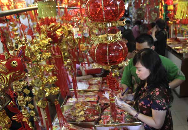 A woman looks through decorations in an Asian market ahead of Chinese New Year next week (AP)