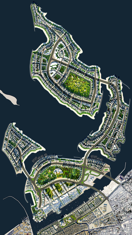 Nakheel itself will develop a significant amount of the 4.5 million square metre south island, creating a creek side destination, easily accessible from the mainland by road bridges and abras. The island’s host of attractions will include a large shopping mall; an Arabic souk-style night market; a 250-room hotel; an amphitheatre for 30,000 people; and a marina that can accommodate large yachts.