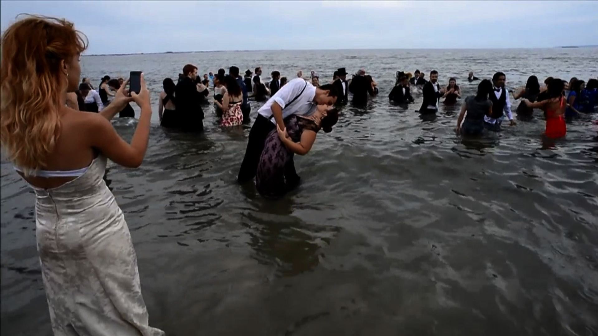| Dozens of New Yorkers dress up in formal wear and gather on Long Island's Ocean Beach for the fourth annual Black Tie Beach event |