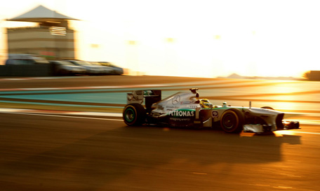 Mercedes' German driver Nico Rosberg drives at the Yas Marina circuit in Abu Dhabi. (AFP)