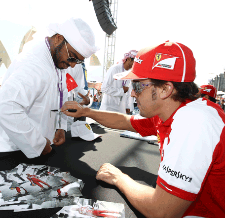 Ferrari super fan Ahmed Al Abr from Abu Dhabi, meets Scuderia Ferrari legend, Fernando Alonso in the lead up to the 2013 Formula One Etihad Airways Abu Dhabi Grand Prix