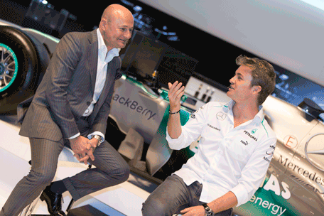 F1 driver Nico Rosberg, and CEO of IWC Schaffhausen, Georges Kern, launched the Mercedes AMG Petronas Simulator in Abu Dhabi