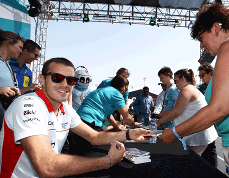 Marussia F1 Racing’s Jules Bianchi meets fans on stage at the 2013 Formula One Etihad Airways Abu Dhabi Grand Prix