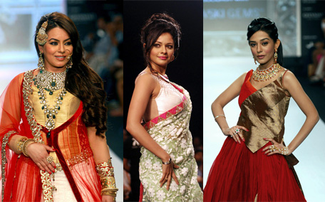 Amrita Rao walks the ramp for 'Agni Jewels' at the 4th edition of India International Jewellery Week 2013 (IIJW) in Mumbai. (AFP)