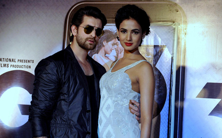 Neil Nitin Mukesh (L) and Sonal Chauhan pose during the showcasing of the music and trailer of upcoming horror thriller Hindi Film "3G" directed by Sheershak Anand and Shantanu Ray Chibber in Mumbai. (AFP)