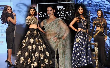 Sri Lankan Bollywood actress Jacqueline Fernandez showcases a creation by Indian designer Ashish N Soni during the Lakme Fashion Week (LFW) Winter/Festive 2016 in Mumbai on late August 27, 2016. (AFP)