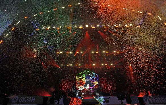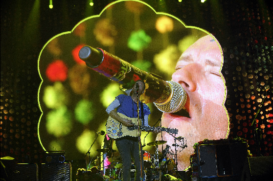 2.. Coldplay's Chris Martin sings as they headline on the Pyramid Stage on the final day of the Glastonbury Festival of Music and Performing Arts on Worthy Farm near the village of Pilton in Somerset, south west England on June 26, 2016.