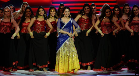 Indian Bollywood actor Madhuri Dixit Nene (C) performs at the 14th International Indian Film Academy (IIFA) Award ceremony at The Venetian hotel in Macau on July 6, 2013. The annual IIFA Awards, India's Hindi language film industry, Bollywood's glitziest awards ceremony, which have been held overseas for the last 13 years, is one of the world's most-watched annual entertainment ceremonies, broadcast to nearly 500 million viewers in 110 countries. (AFP)