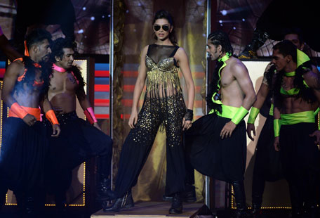 Indian Bollywood actor Deepika Padukone performs at the 14th International Indian Film Academy (IIFA) Award ceremony at The Venetian hotel in Macau on July 6, 2013. (AFP)