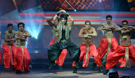 Indian Bolywood actor Sushant Singh Rajput (C) dances at the 14th International Indian Film Academy (IIFA) at The Venetian hotel in Macau on July 6, 2013. (AFP)