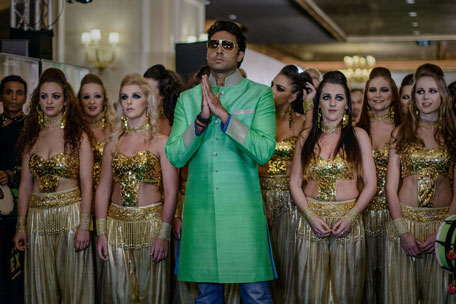 Bollywood actor Abhishek Bachchan gets ready before performing a dance during the 14th International Indian Film Academy (IIFA) in Macau on July 6, 2013. (AFP)
