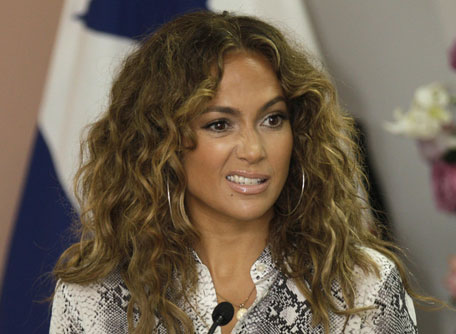 Singer and actress Jennifer Lopez is seen during a press conference at the Hospital del Nino (Children´s Hospital) in Panama City. Lopez visited the hospital and donated telemedicine equipment that will allow pediatricians to share diagnostics and treatments with hospitals abroad. (AFP)