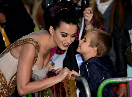 Katy looks delighted to get a kiss on the cheek from a young fan (GETTY/GALLO)