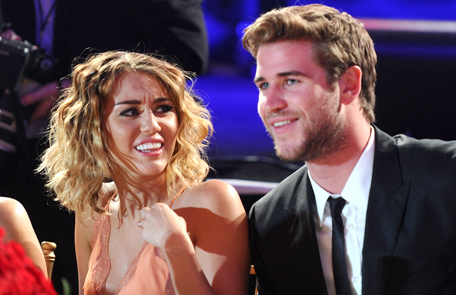Actress/singer Miley Cyrus (L) and actor Liam Hemsworth in the audience during Muhammad Ali's Celebrity Fight Night XVIII held at JW Marriott Desert Ridge Resort & Spa in Phoenix, Arizona. (GETTY/GALLO)