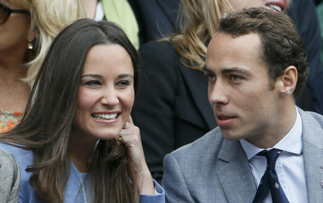 Pippa Middleton sits on Centre Court with her brother James at the Wimbledon Tennis Championships, in London. (REUTERS)