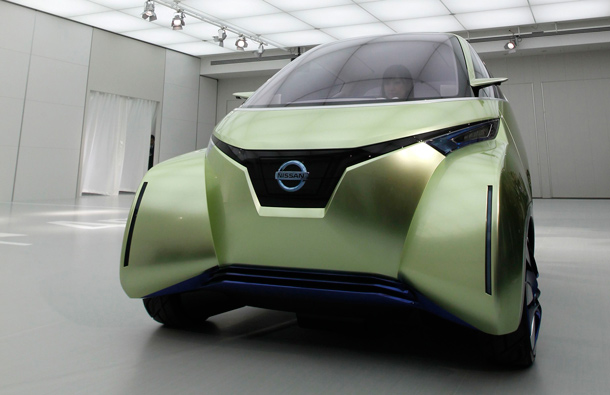 Nissan's smart urban commuter Pivo3 at the company's Design Center in Atsugi. The Electric Vehicle Pivo3 can make a legal U-turn in a road only 4-metre wide. (AFP)