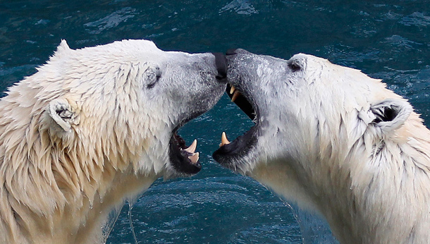 Polar bears playfully fight at the St-Felicien Wildlife Zoo in St-Felicien, Quebec. According to Environment Canada, Canada is home to around 15,000 of the estimated 20,000 polar bears in the world. The U.S. (Alaska), Russia, Denmark (Greenland) and Norway are the other four countries where polar bears can be found. (REUTERS)
