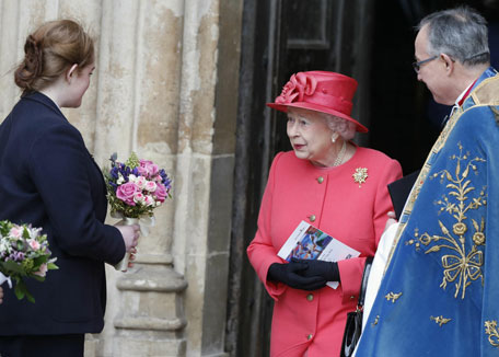 Britain's Queen Elizabeth leaves the Commonwealth Observance Service at Westminster Abbey in London . (REUTERS)
