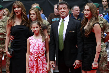 Sylvester Stallone arrives with his family for the UK premiere of The Expendables 2 at a central London cinema. (AP)