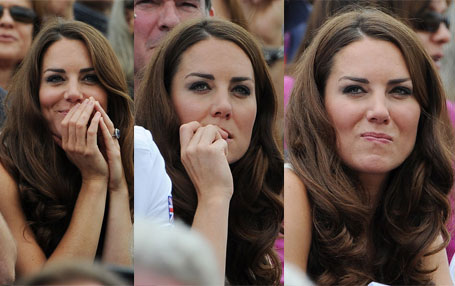 (L-R) Prince William, Duke of Cambridge, Catherine, Duchess of Cambridge and Prince Harry look on during the Show Jumping Eventing Equestrian on Day 4 of the London 2012 Olympic Games at Greenwich Park. (GETTY/GALLO)