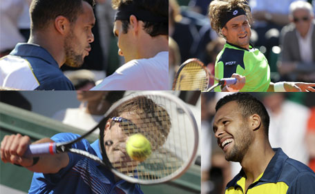 France's Jo-Wilfried Tsonga celebrates his victory over Switzerland's Roger Federer at the end of their French Tennis Open quarter final match at the Roland Garros stadium in Paris, on June 4, 2013. (AFP)