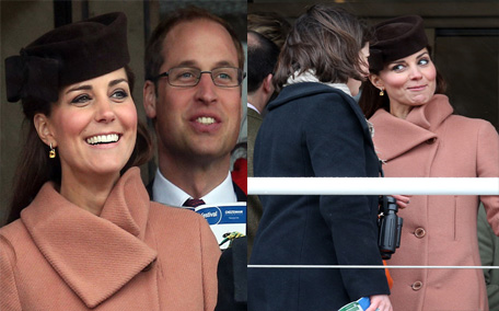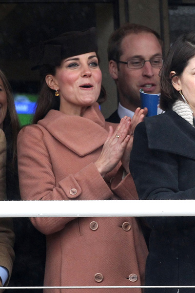 Catherine, Duchess of Cambridge and Prince William, Duke of Cambridge watch the races on day 4 of the Cheltenham Festival at Cheltenham Racecourse in Cheltenham, England. (Getty Images)